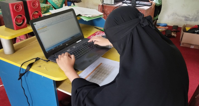 Kegiatan Praktek TIK secara One PC on Personal untuk menetahui sejauh mana masing-masing siswa SMP Islam Thoyba dalam menguasai materi dan mempraktekkannya.